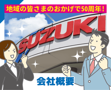 地域の皆様のおかげで 50周年 地域密着のスズキディーラー