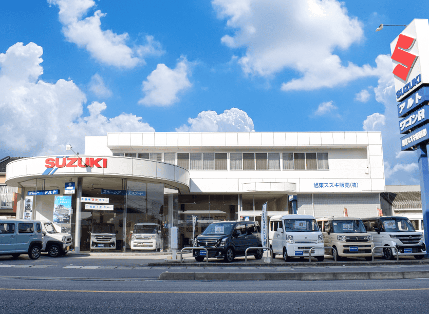旭東スズキは、東中国スズキの副代理店 当社は東中国スズキの副代理店ですのでスズキ車をメインに、全メーカー取り扱いがあります。お客様のニーズに合わせて最適な一台をご提案したいと考えております。新車だけでなく、未使用車・中古車やアフターサービスでも万全のサポート体制で皆さまをお待ちしてます。ぜひお気軽にご相談ください。